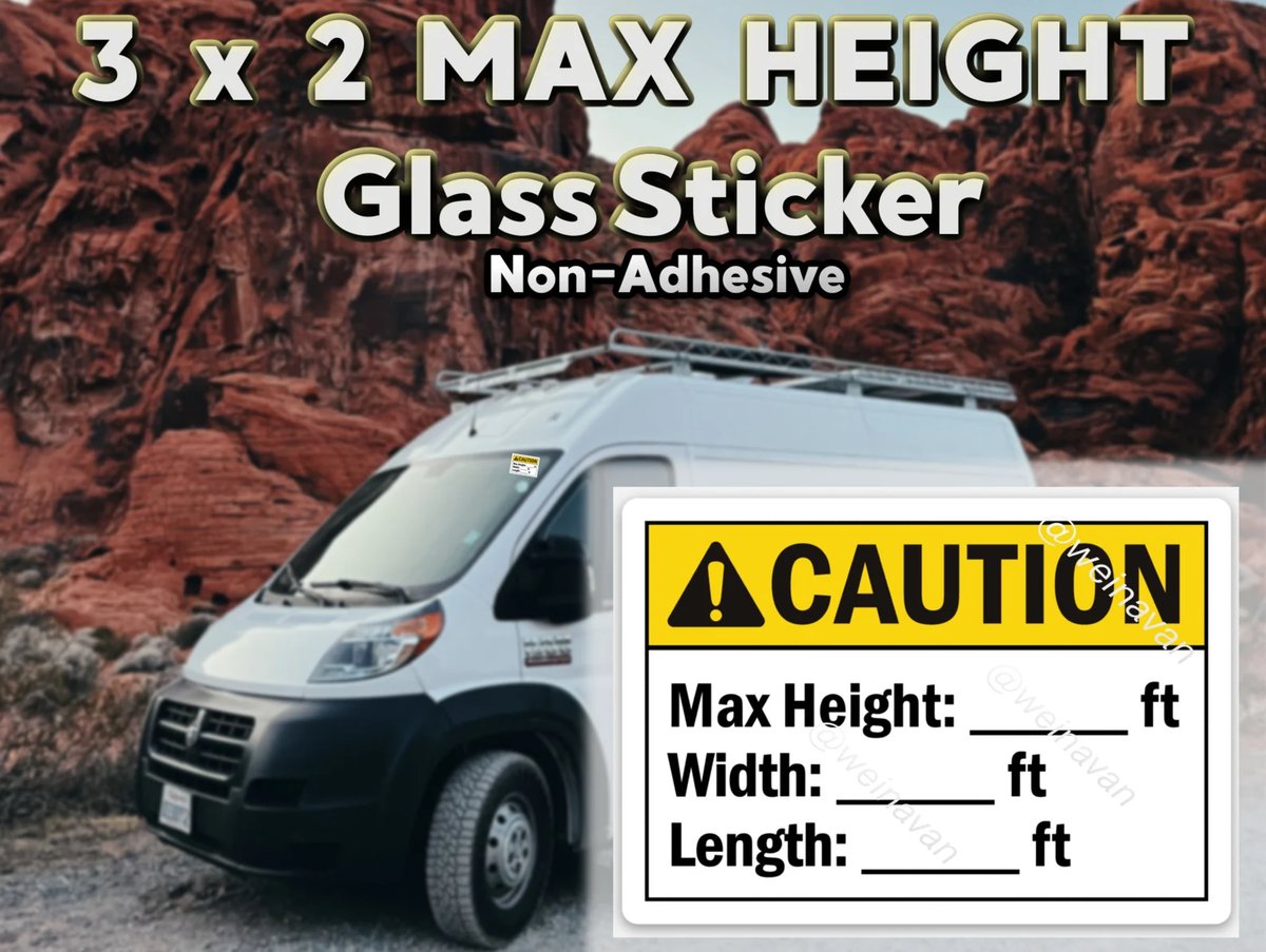 This non-adhesive writable static cling includes your max height, width, length. You can move it around without leaving a mark. Great reminder for your RV vehicle renters or tow service.